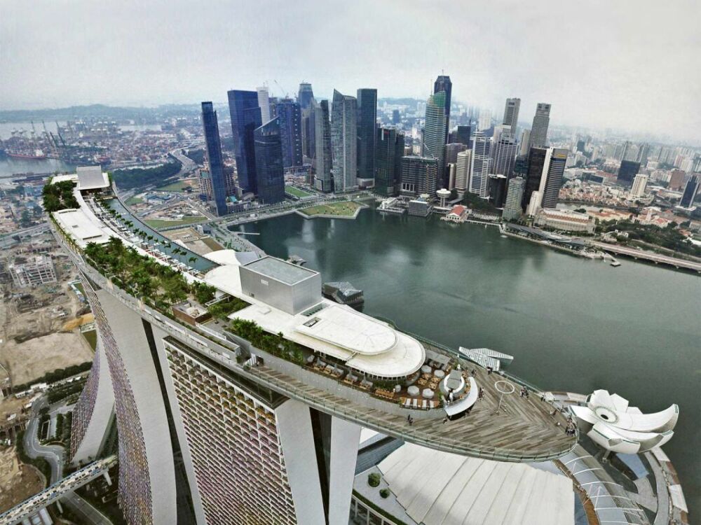 Марина Бэй – ещё один архитектурный шедевр Сингапура. Три башни высотой в двести метров с террасой в виде гондолы на крыше завораживают. Богатые туристы стремятся именно в этот отель, так как с него открывается незабываемый вид на весь Сингапур, к тому же на крыше расположены не только сады, но и бассейн. Самые дешёвые номера тут обойдутся в 400 долларов.