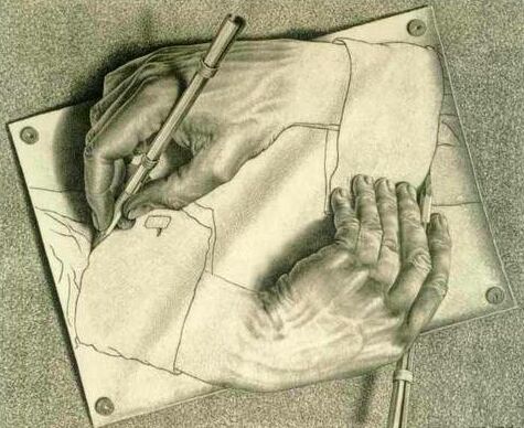 - Игра воображения проявляется как кажущиеся объекты и события посредством бесконечного множества воспринимающих программ. При проявлении игры воображения в каждой отдельной программе восприятия возникает эгоцентрический эффект, который выражается в том, что каждая программа начинает видеть себя как действующий объект в центре проявляемых ею событий. Эффект кажущегося себе «я» возникает, когда программа создаёт описание возникающего в ней восприятия самой себя как объекта. Так возникают различные кажущиеся себе «я», считающие себя реальными игроками в этой игре.