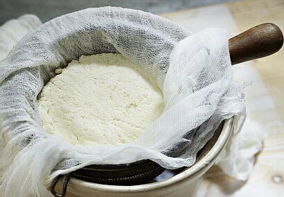 2) если вам нужен панир как мягкий творог, просто затяните марлю потуже и выжмите воду.
