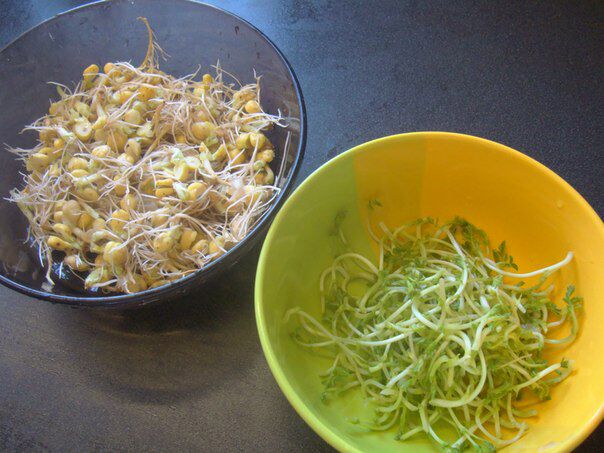 Лучше смешивать по два разных вида проростков (скажем, гречиху и овес, кунжут или амарант и пшеницу) и менять этот набор раз в два месяца.