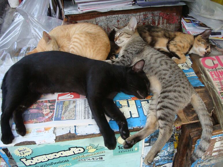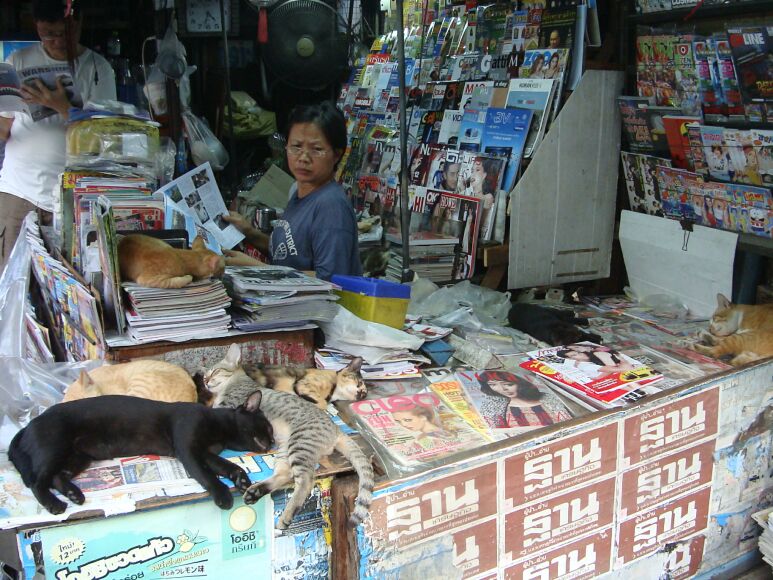Фрукты, овощи здесь можно купить на каждом углу, как и сделать массаж. А ещё в городе есть места, где кошки любят лежать на прилавках и греться на солнышке. Но слишком явный запах кошачьего туалета отпугивает многих покупателей ещё за десяток метров.