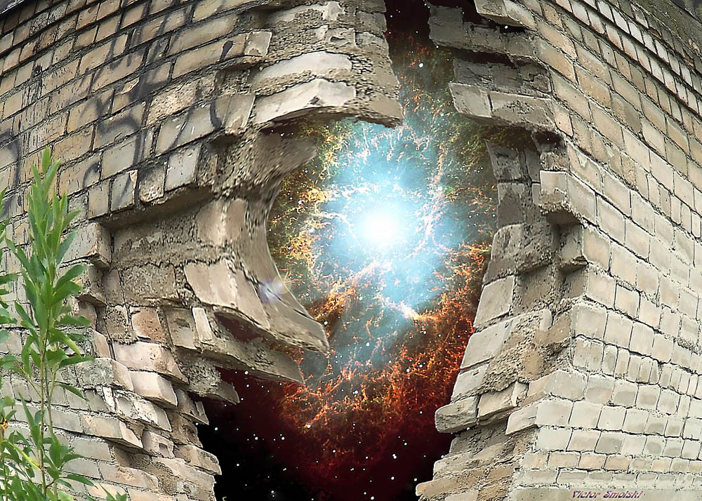 Современная наука обнаружила, что весь кажущийся нам мир состоит из хитросплетений атомов. Но сами атомы при этом состоят из элементарных частиц, которые проявляются в нашем сознании либо как волна, не имеющая массы, либо как частица, не имеющая размера. Получается, что мир, который нам кажется реально существующим, состоит из того, что не существует, являясь воображением, происходящим по определённым алгоритмам и проявляющимся как изображение на воображаемом мониторе сознания.